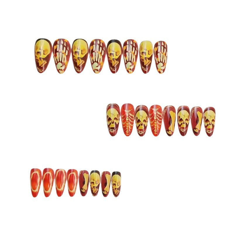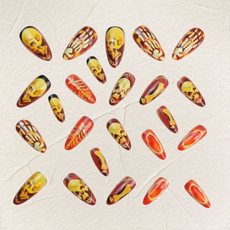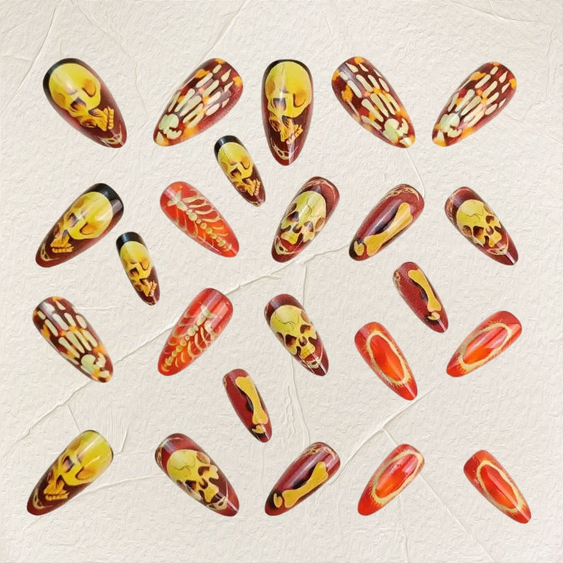 Day-of-the-Dead Skull — Almond Press-On Gel Nails (Halloween)